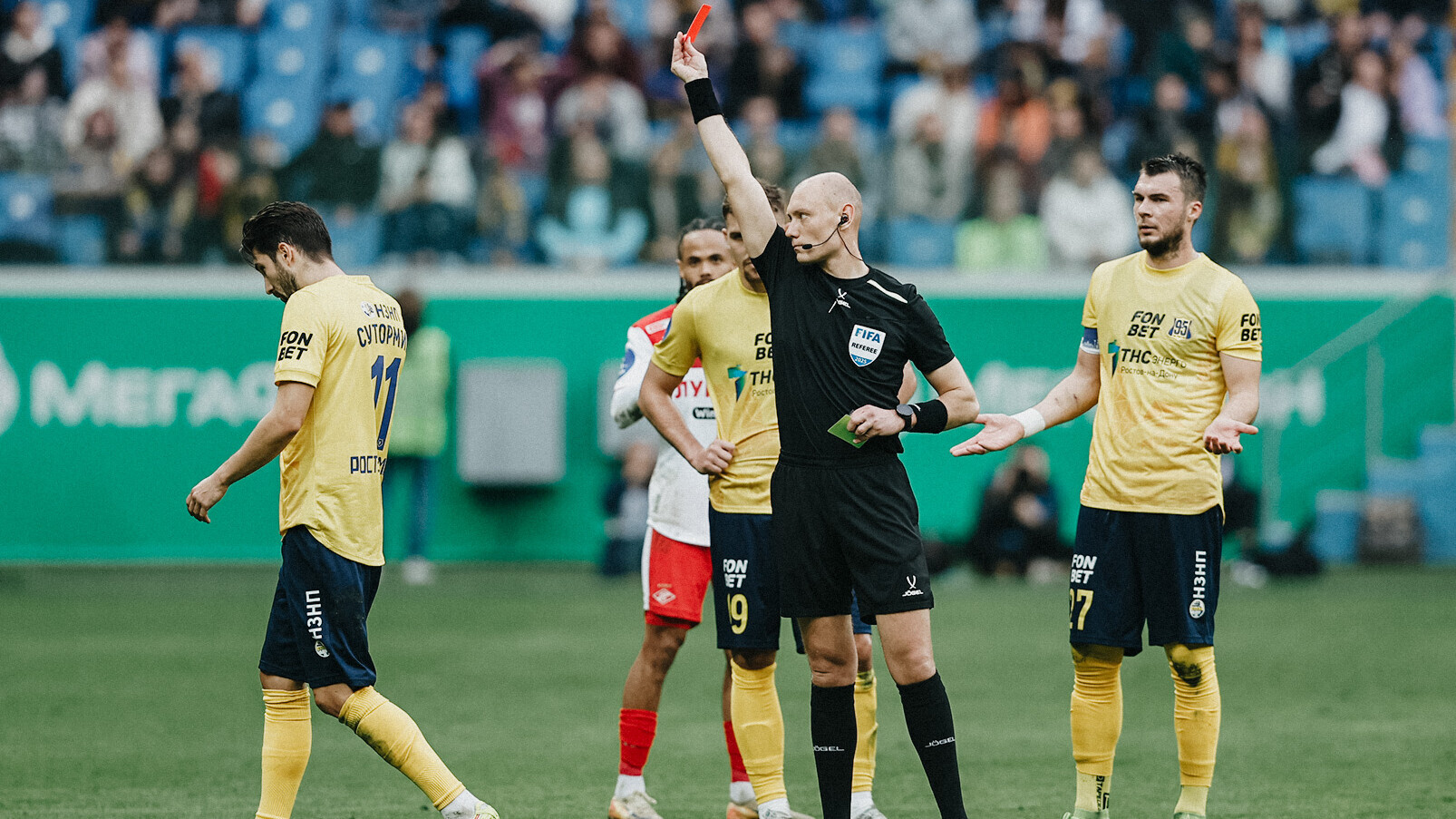 Встреча 23‑го тура в Ростове‑на‑Дону завершилась со счетом 3:0 в пользу гостей. В компенсированное к первому тайму время Сутормин после просмотра VAR получил прямую красную карточку за нарушение на Маркиньосе. Как стало известно «Матч ТВ», у бразильского полузащитника «Спартака» предварительно диагностирована контузия большеберцовой кости и мягких тканей голени.